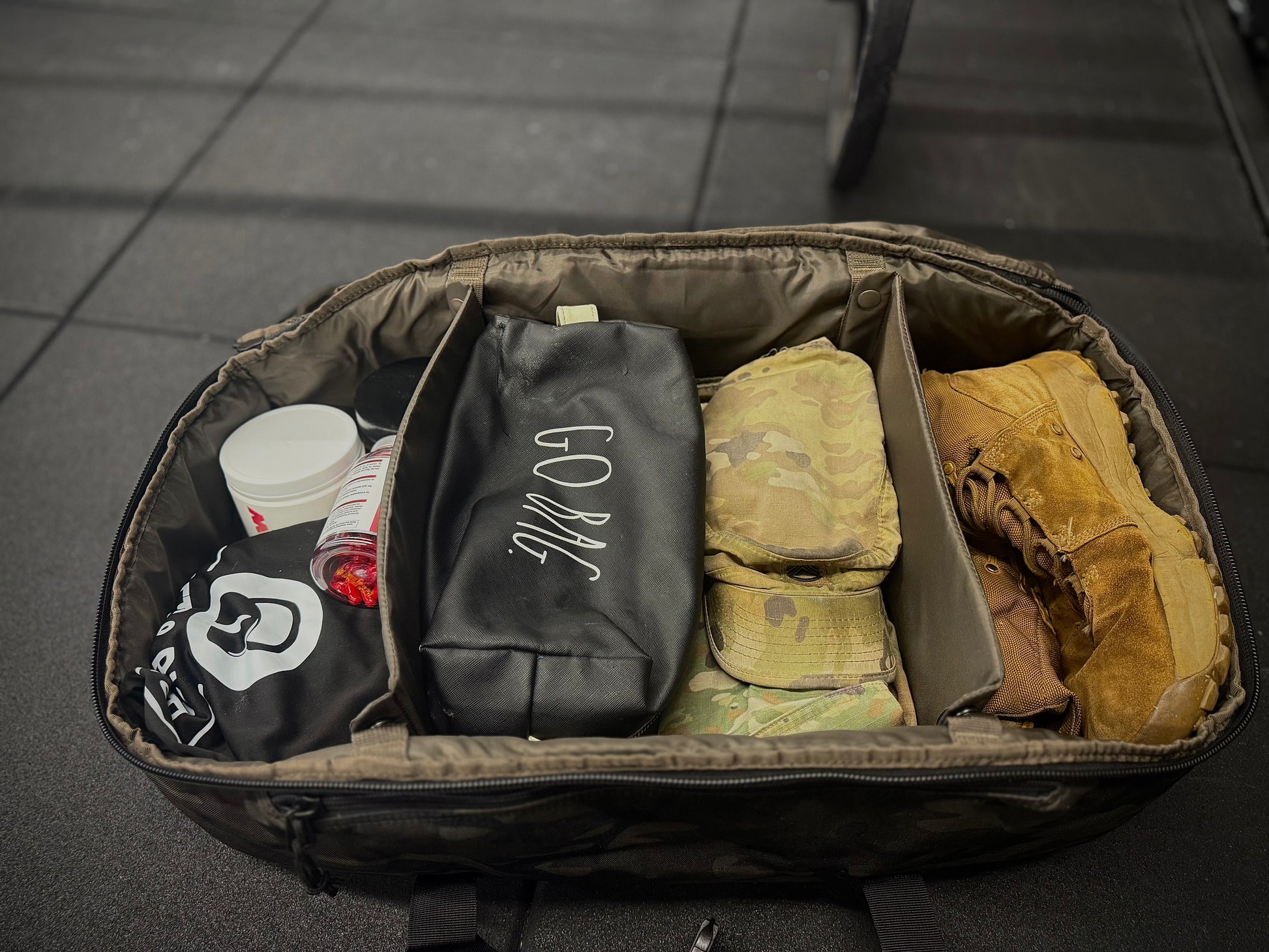 Tired of your dirty boots and clothes getting mixed up with your clean clothes? The Bullets and Biceps Barrel Duffle is made with snap on dividers to help you keep everything separated!